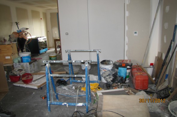 Bon ben là logiquement c'est notre entrée, le salon - salle à manger, mais là c'est l'atelier !!!!!!!!!